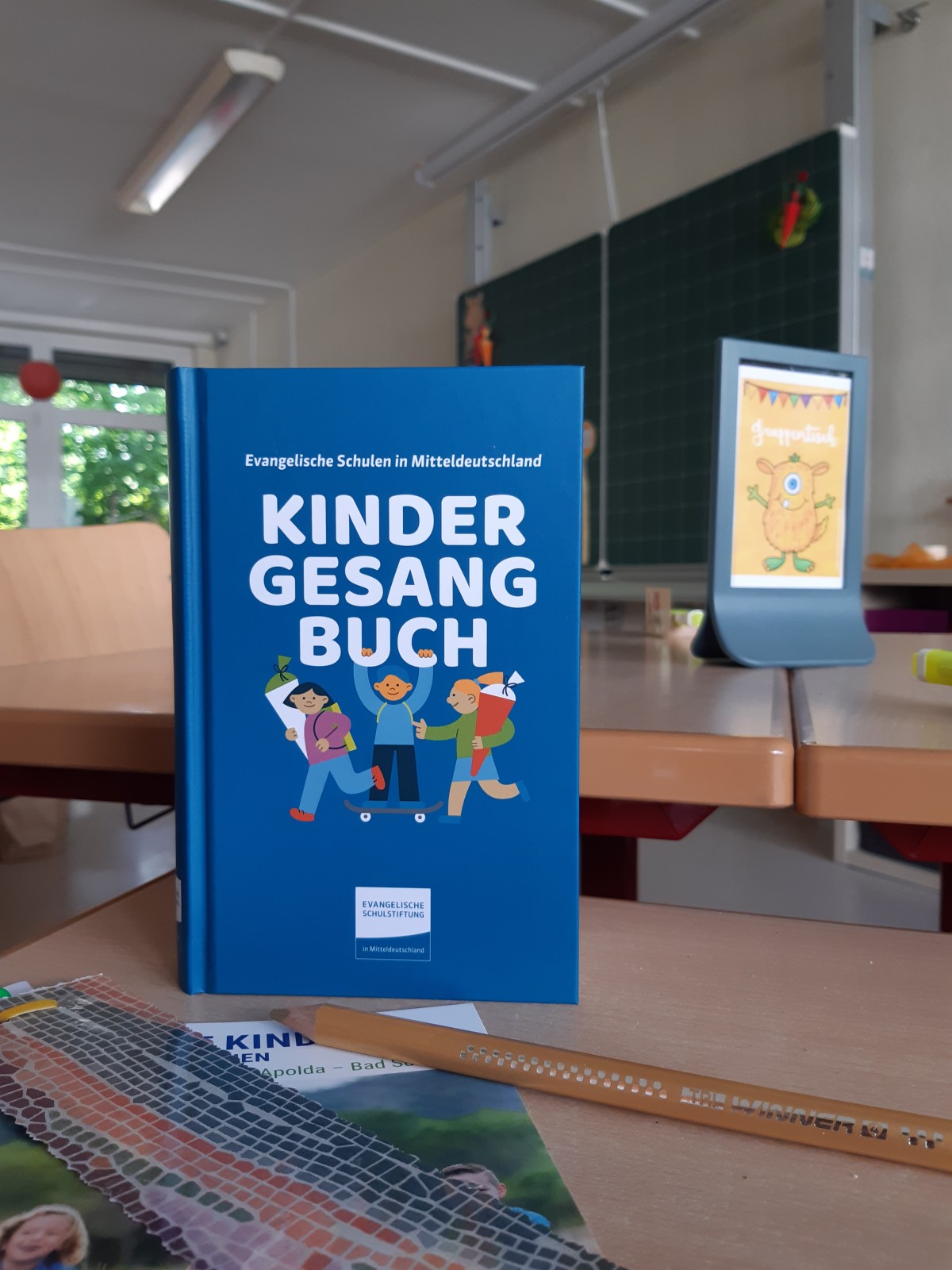 Am Montag war die Freude wiederum groß bei den Schulanfängern. Auf ihren Tischen erwartete sie das Geschenk der Evangelischen Schulstiftung in Mitteldeutschland: das eigene Kindergesangbuch. Dieses wird die Kinder währen ihrer Grundschulzeit begleiten. Herzlichen Dank für dieses tolle Geschenk!