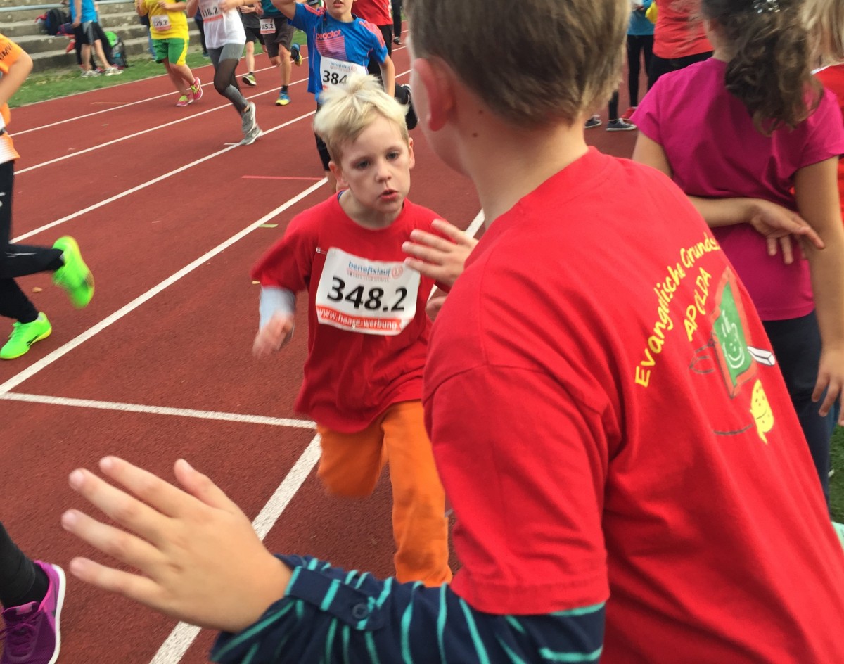 Auch dank der insgesamt 26 Läufer der Evangelischen Grundschule Apolda konnte der Benefixlauf 2017 einen neuen Rekord vermelden: 1317 Läufer, 5.842 km, 13.909 Runden und die Rekordsumme von 30.198 €.